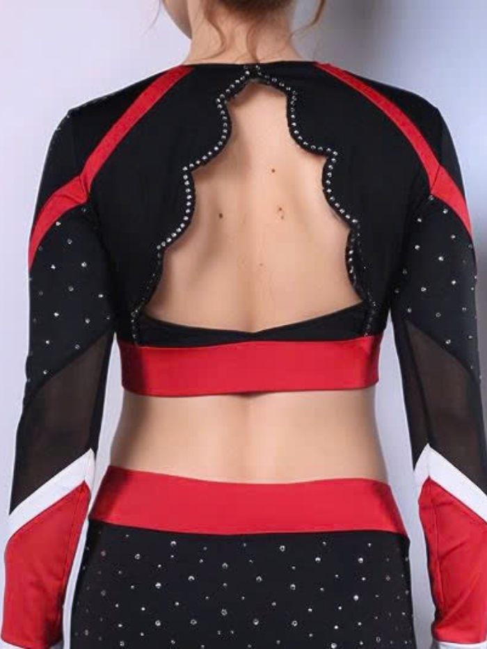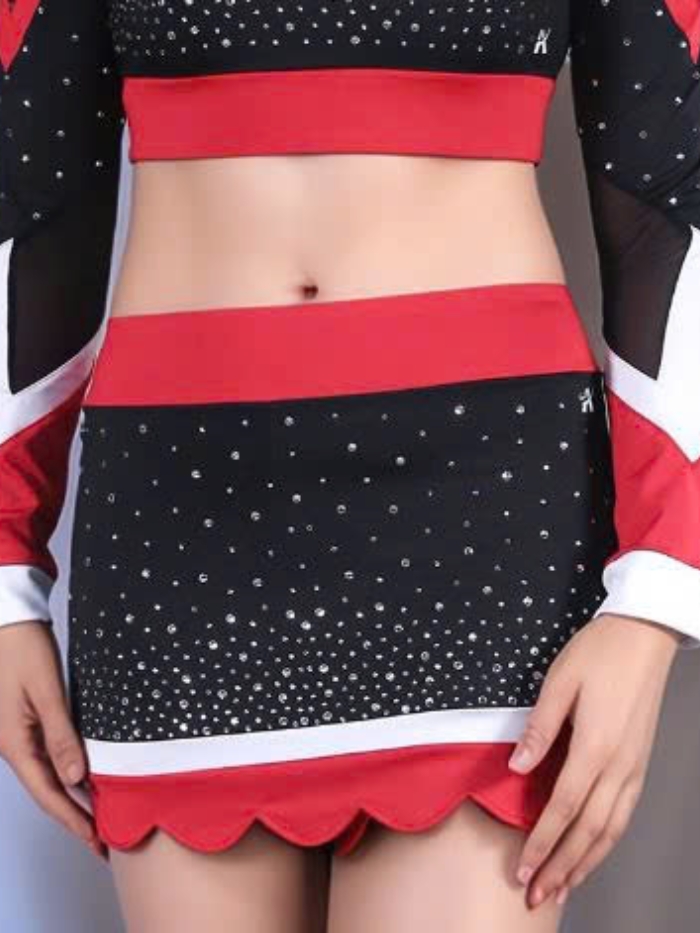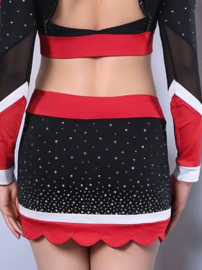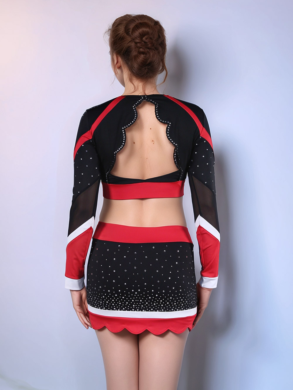 Two-piece cheer uniform (long-sleeve crop top + a-line skirt)