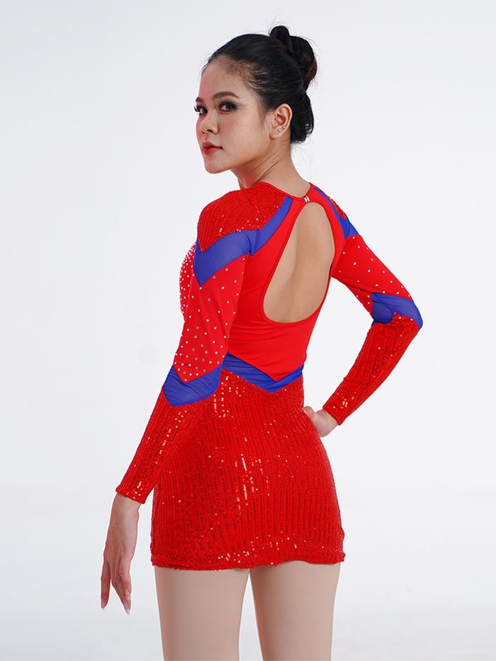 ✨ Skirt: Integrated sequin mini-skirt for a uniform, stage-ready look.