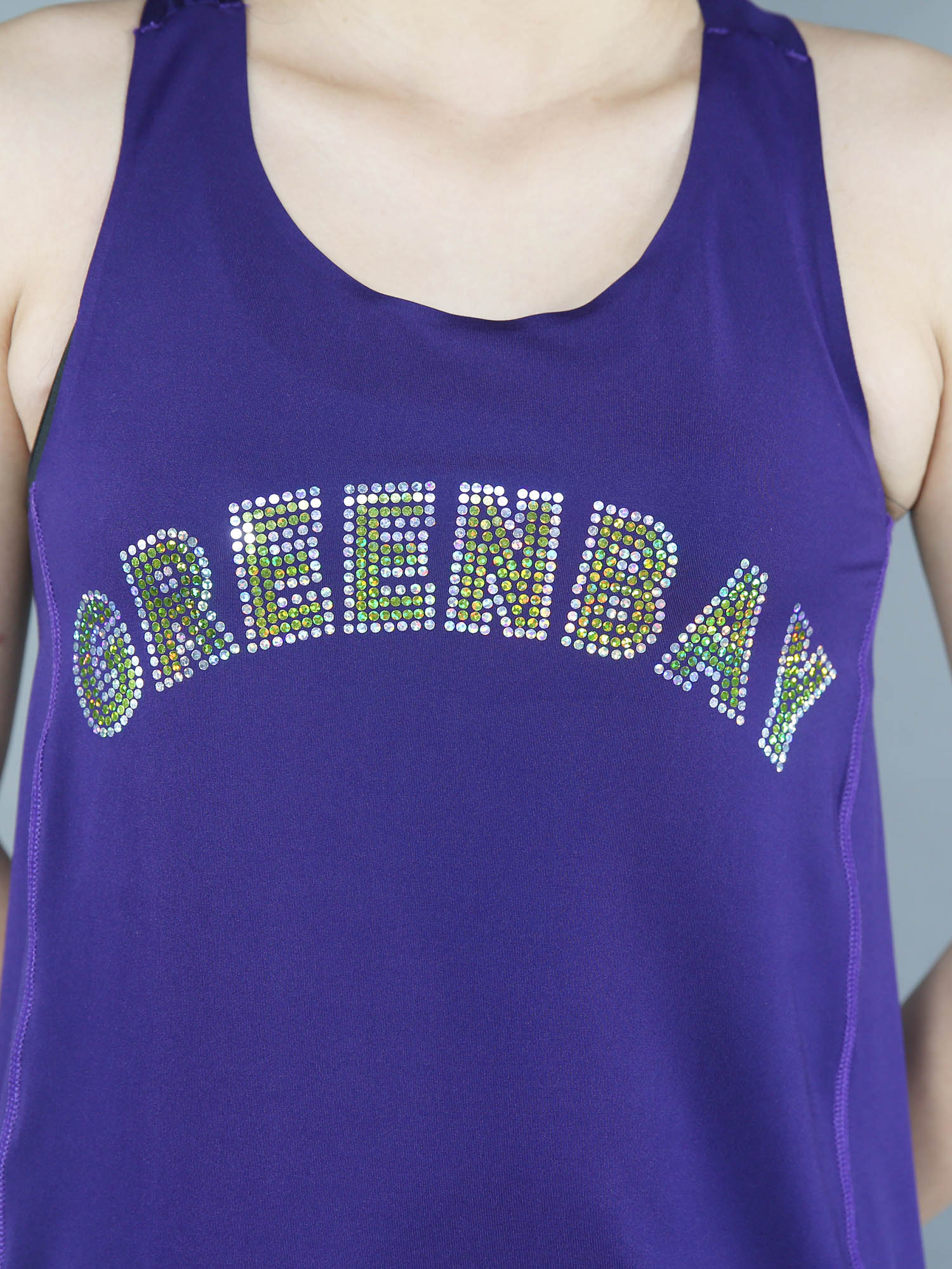 This seamless racerback tank is light weight, breathable, and perfect for wearing on-the-go. This tank comes with spangle team name and keyhole cut-out, net hole shoulders. Mix and match with other styles to complete the look.