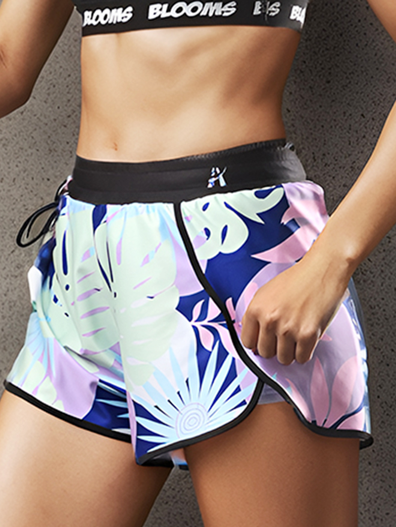 Freshen up your cheer gear with the CPW144 Blooms Edition Flutter Training Shorts, made for athletes who want bold prints and maximum comfort. These lightweight shorts feature an all-over pastel tropical print in blues, pinks, and greens, framed by sleek black piping and a solid black drawstring waistband for the perfect fit.