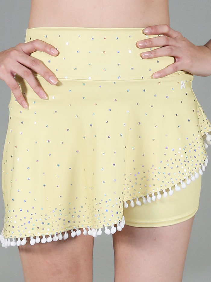 Skirt features a soft mesh layer dusted in spangles and accented with matching pom-pom fringe for a fun and coordinated look.