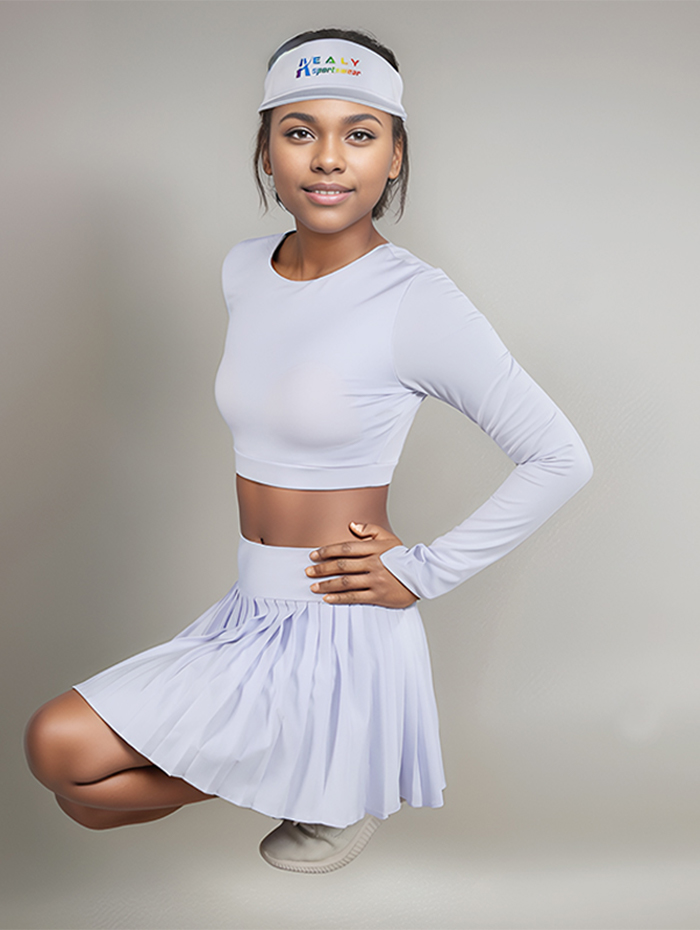 Fresh, clean, and performance-ready – the CPW163 set is your go-to for practice or school dance. Featuring a sleek white long sleeve crop top and a matching pleated skirt, this combo blends simplicity with standout style. The top includes a comfortable crew neckline and full-length sleeves with thumbhole details, while the skirt brings movement with classic pleats and a secure high waistband.
