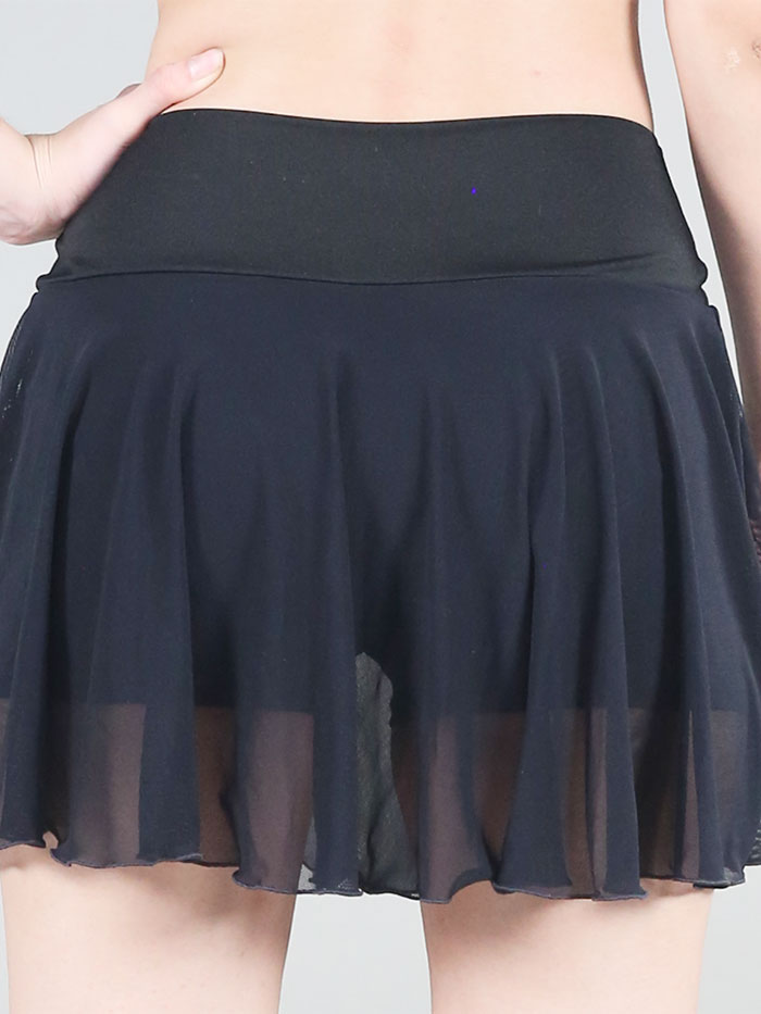 ✨ High-Waisted Overlay Skirt – The soft mesh outer layer flows beautifully with every motion, while the built-in shorts provide full coverage and support. Embellished with subtle rhinestones for just the right amount of shimmer.