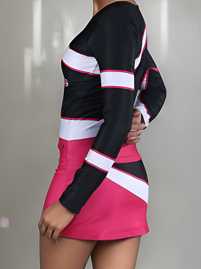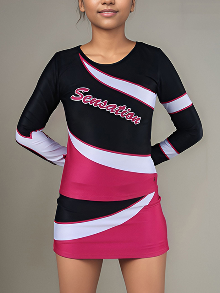 Bring motion to life with the DS007 Sensation Edition Cheer Uniform, a sleek and dynamic 2-piece set designed for peak performance and standout style. Featuring vibrant sublimated swirl graphics in black, pink, and white, this long sleeve uniform showcases the perfect balance of motion and modern cheer fashion.