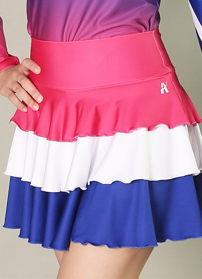 • Skirt: Triple-tiered ruffle skirt with alternating pink, white, and blue layers that bring rhythm and motion to every performance.