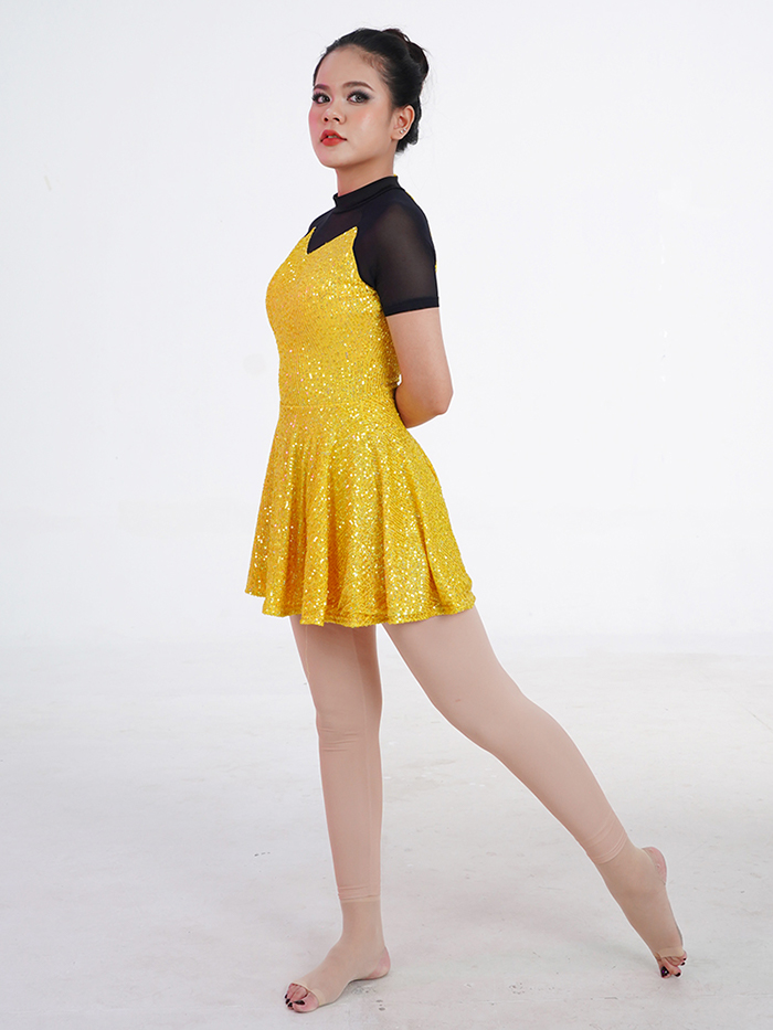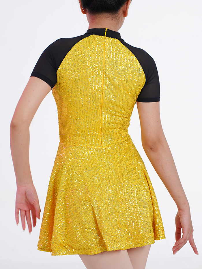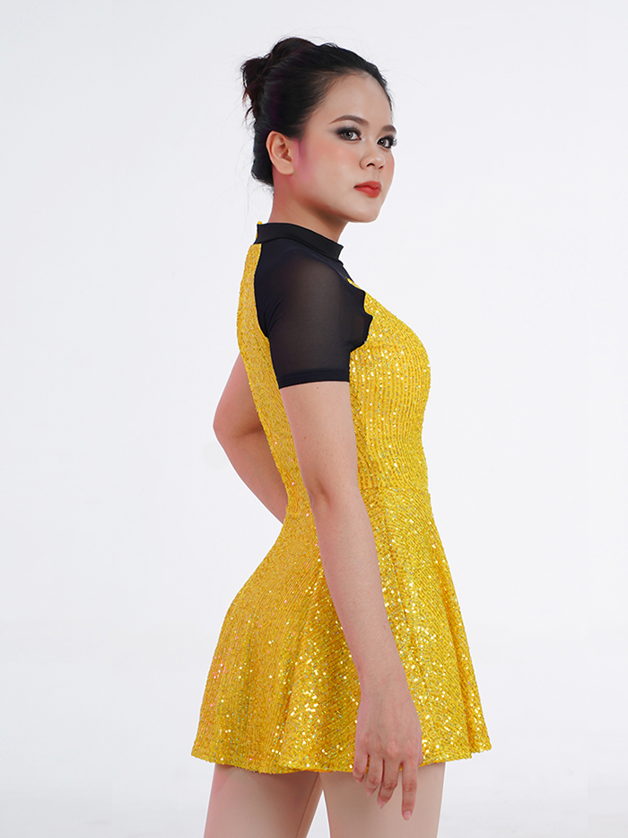 Step into the spotlight with the Jazz Dance Dress JD033, a show-stopping combination of shimmer and style. Its radiant yellow sequins and sleek black mesh accents create the perfect balance between modern elegance and high-energy performance flair.