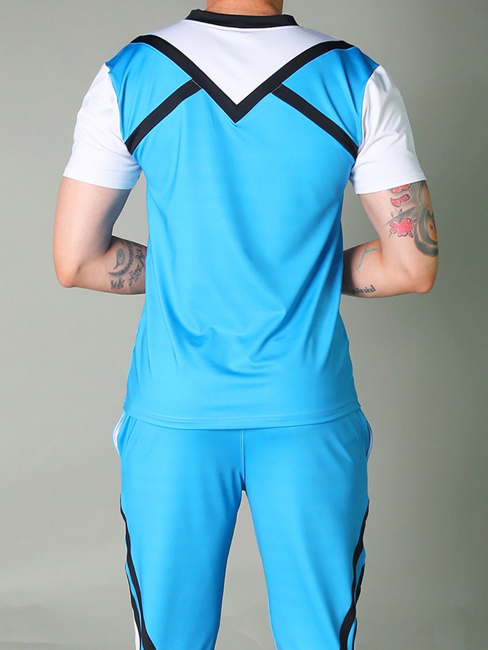 Make a bold statement in the MCU029 Male Cheer Uniform – a vibrant and energetic design made to dominate the mat and sideline. This short sleeve top features a striking aqua base with clean white sleeves, black V-shaped detailing, and the powerful “DOMINATORS” team name bursting across the chest in large varsity lettering. Rainbow-hued spangles scatter beneath the logo for a shimmering effect that catches the light and commands attention.