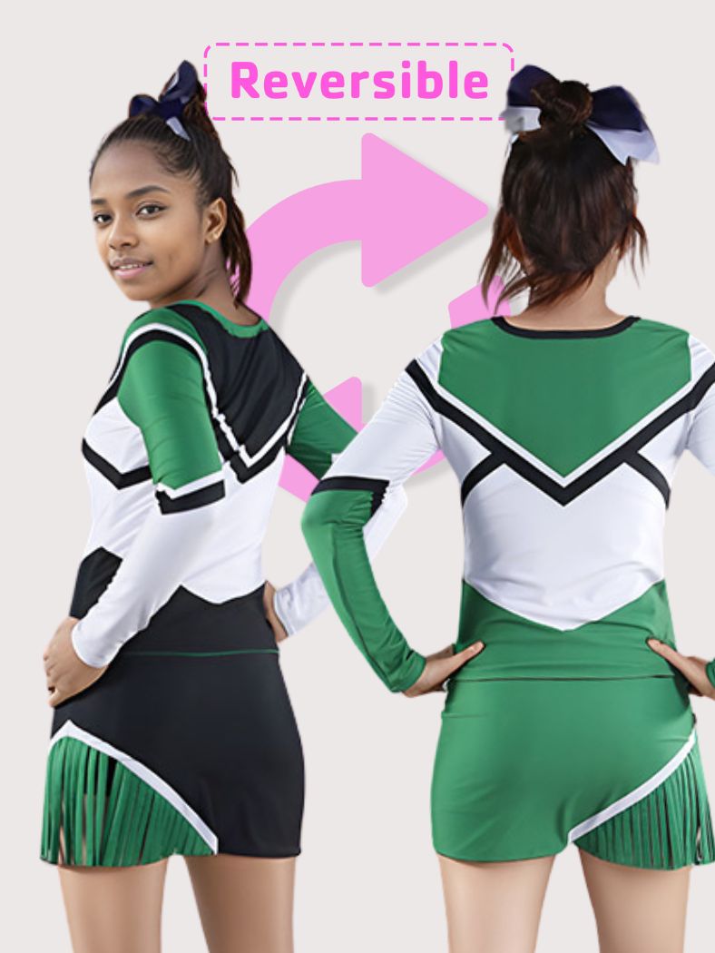 Reversible cheer uniforms for the win! Get multiple looks with one amazing dye-sublimated reversible design!