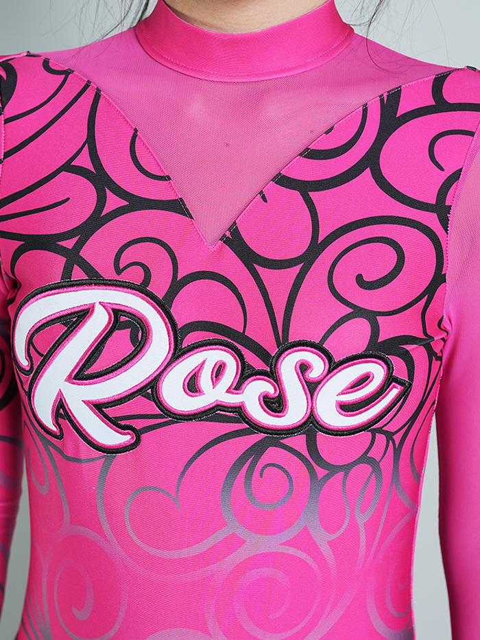 Flaunt fierce elegance with the School Dance Bodysuit SDU015 — a standout look that blends bold style with graceful motion. This full-length pink bodysuit features an all-over swirling black scroll print, perfect for making a dramatic entrance. Mesh long sleeves add breathability and dimension, while the open scoop back adds a touch of sophistication. The high neckline and form-fitting silhouette create a sleek finish, making it ideal for teams who want to captivate from every angle.
